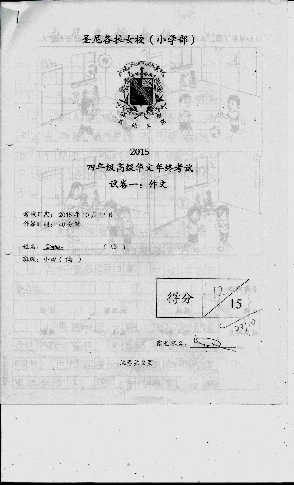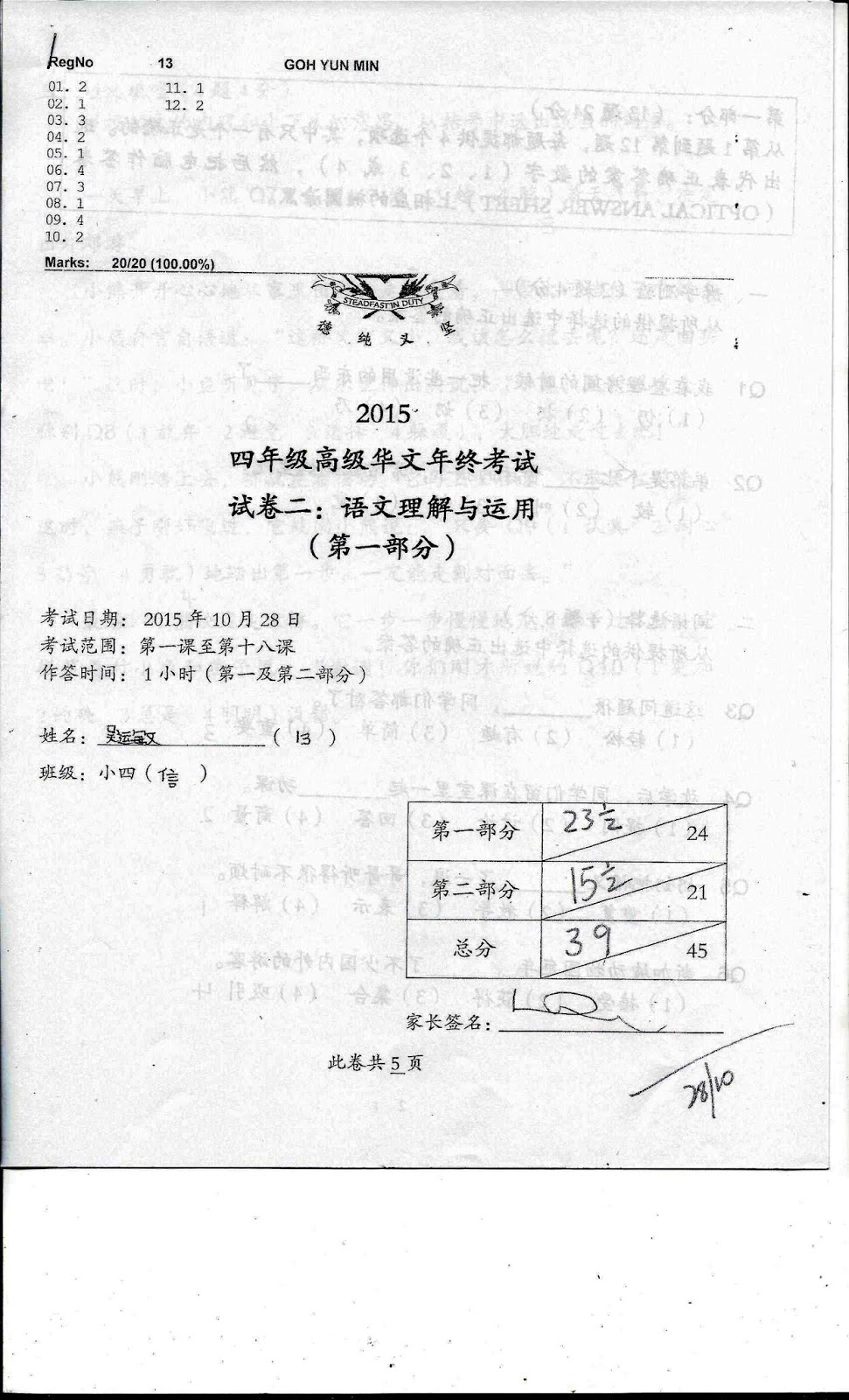 2015 P4 Higher Chinese SA1