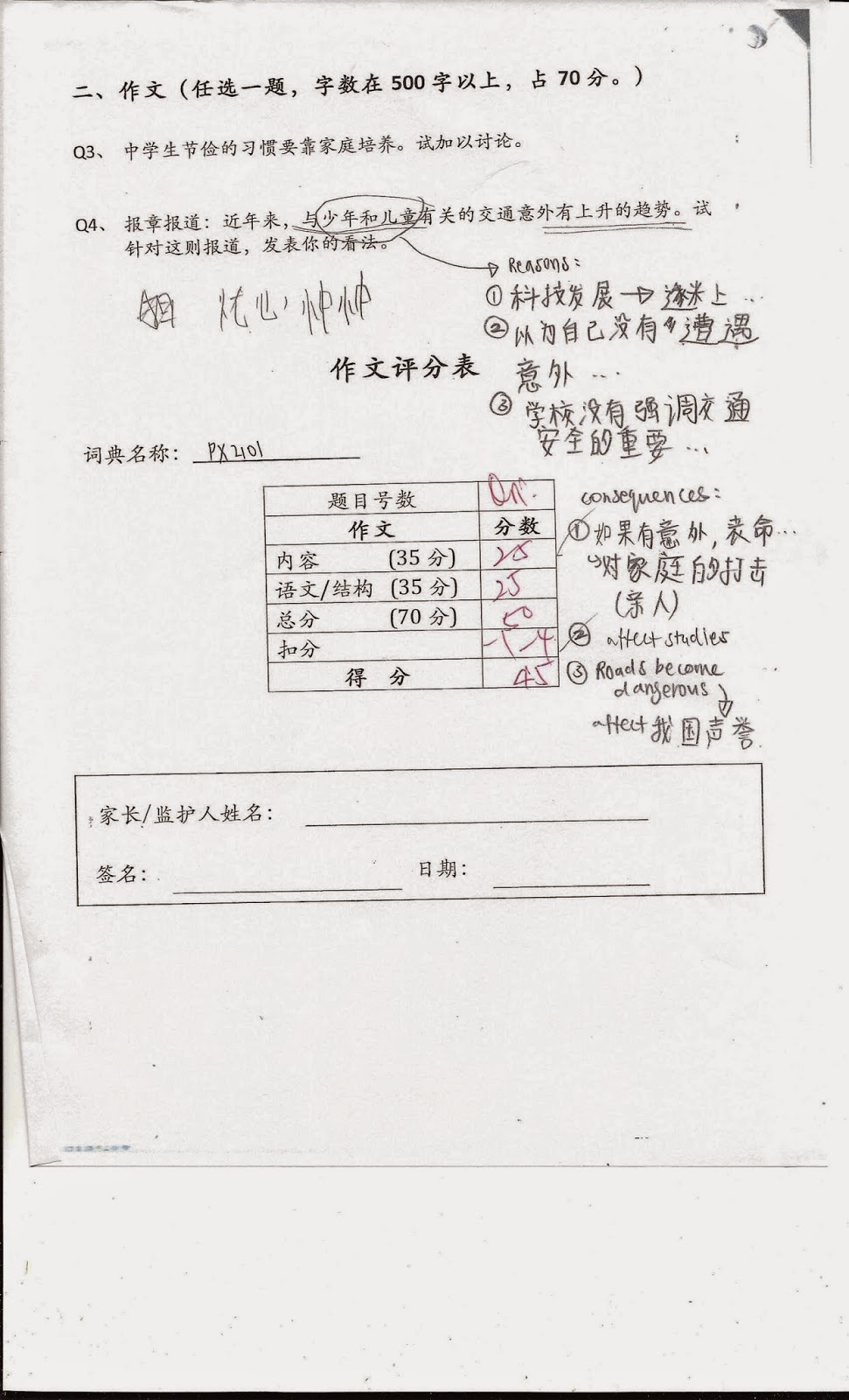 Higher Chinese Paper 2 44 / 50