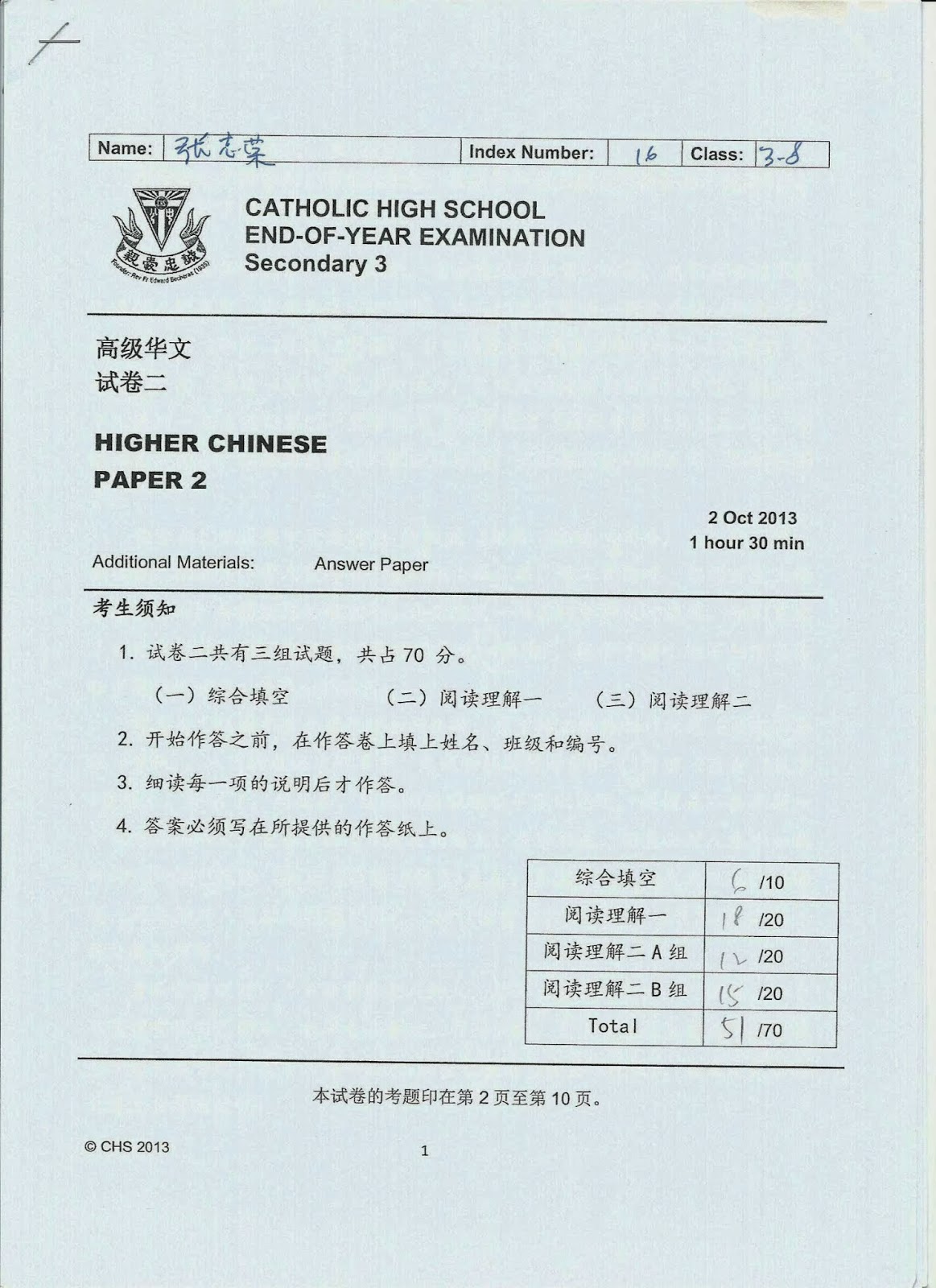Higher Chinese Paper 1 (compo) 48/80