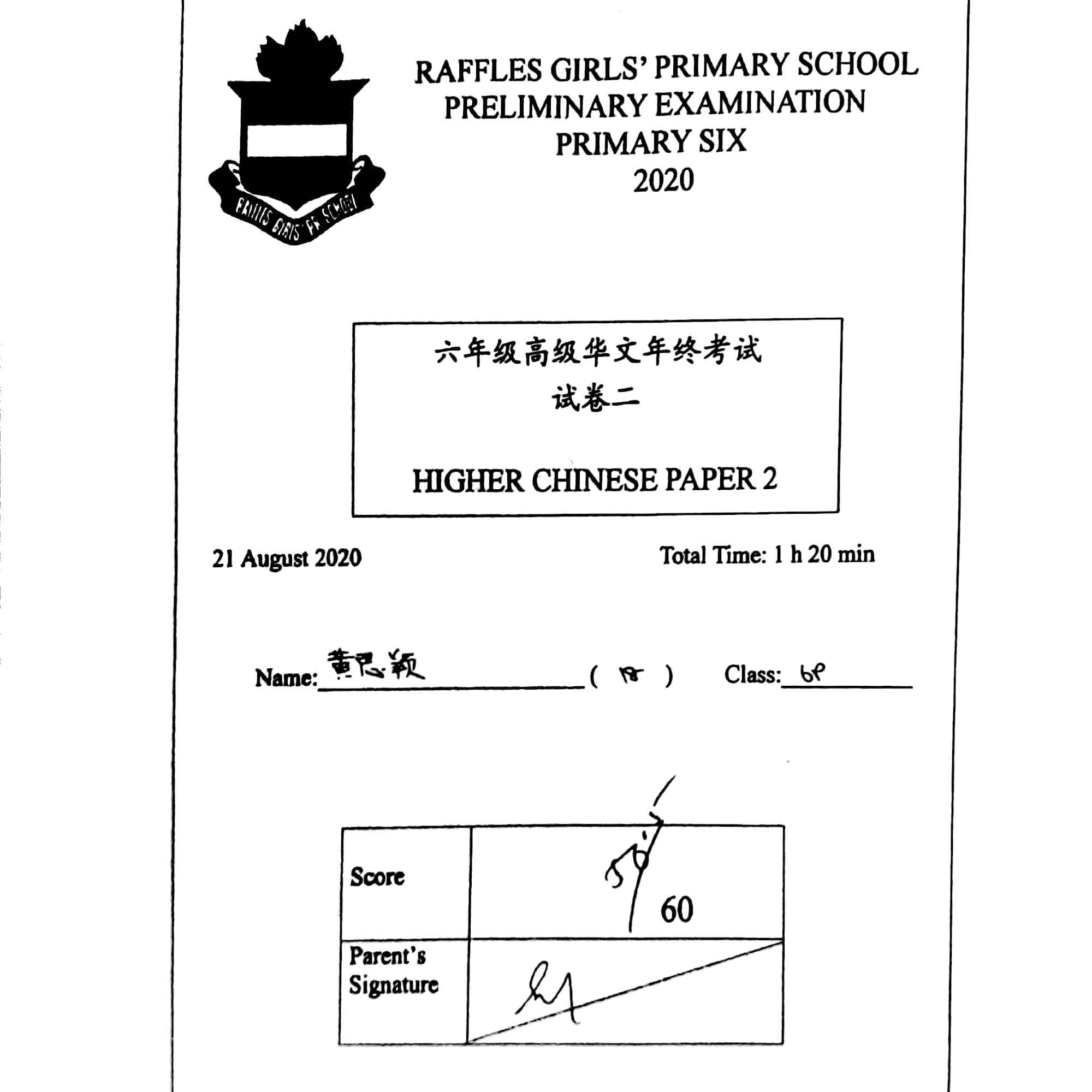 2020 P4 Higher Chinese